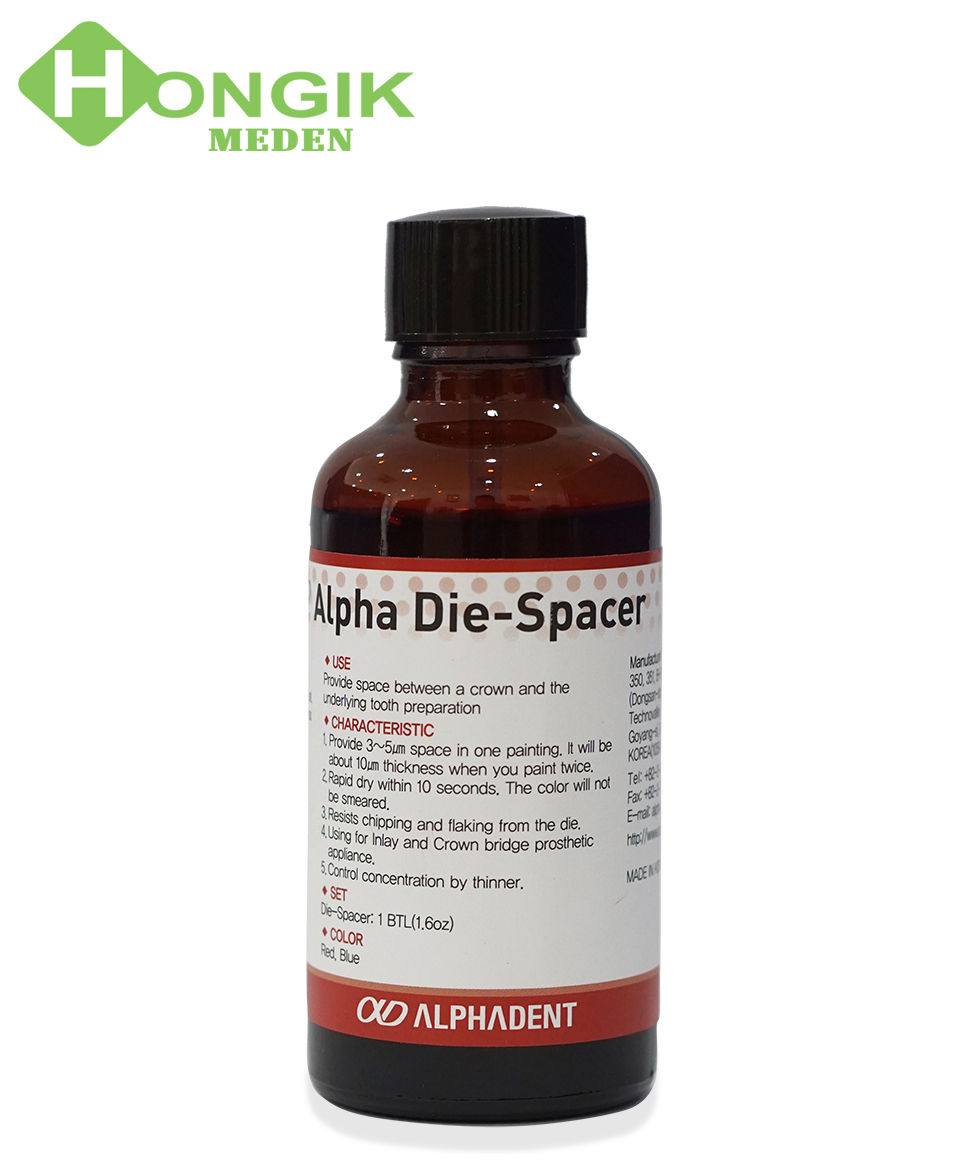 • Dung dịch tạo khoảng hở die Alpha Die-Spacer là sản phẩm của công ty Alphadent (Hàn Quốc).