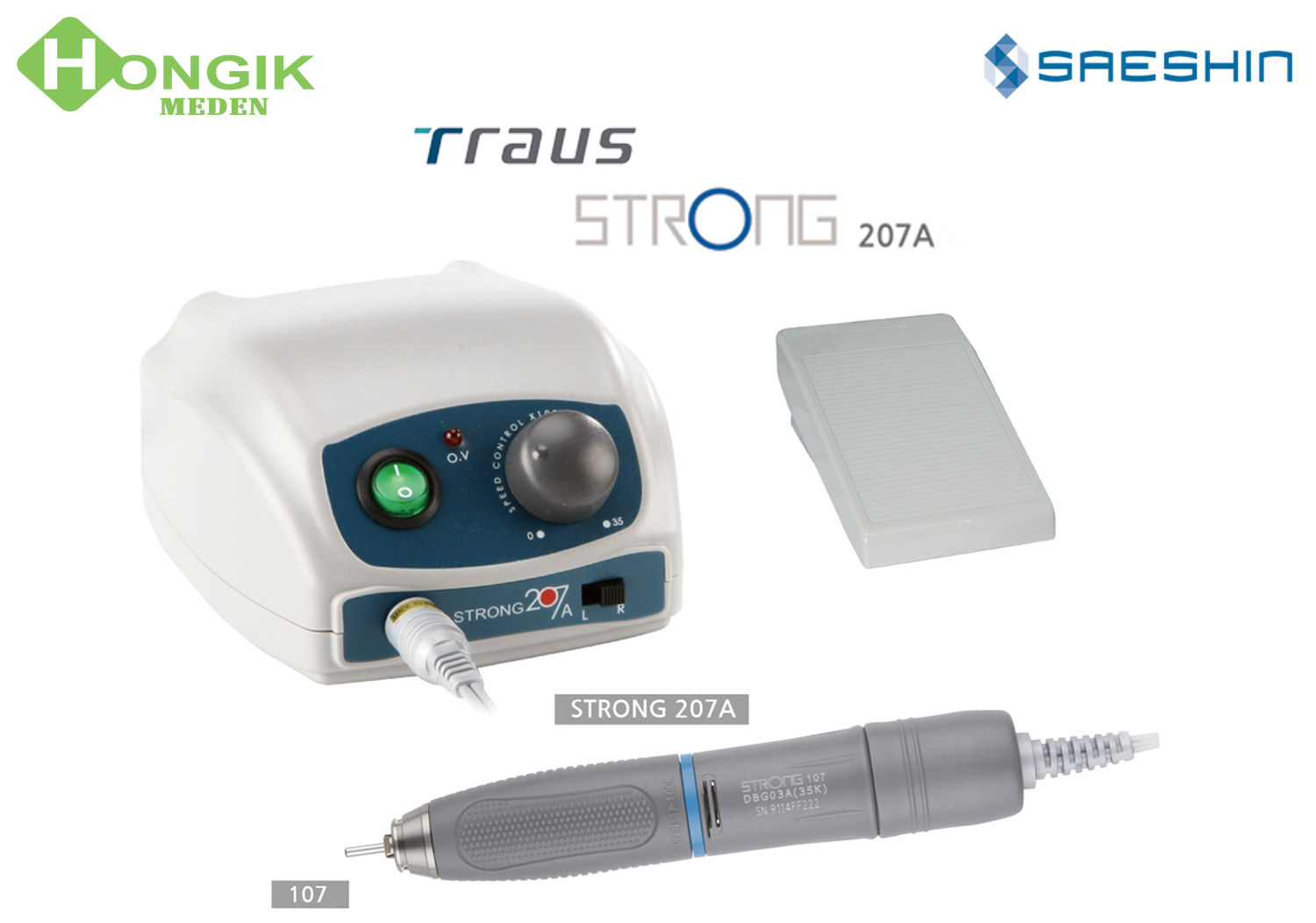 Máy mài micromotor Saeshin - Saeshin Strong 207A là sản phẩm của công ty Saeshin (Hàn Quốc). Saeshin Strong 202 có động cơ 35.000 RPM, có chổi than, hệ thống bảo vệ quá tải tự động.