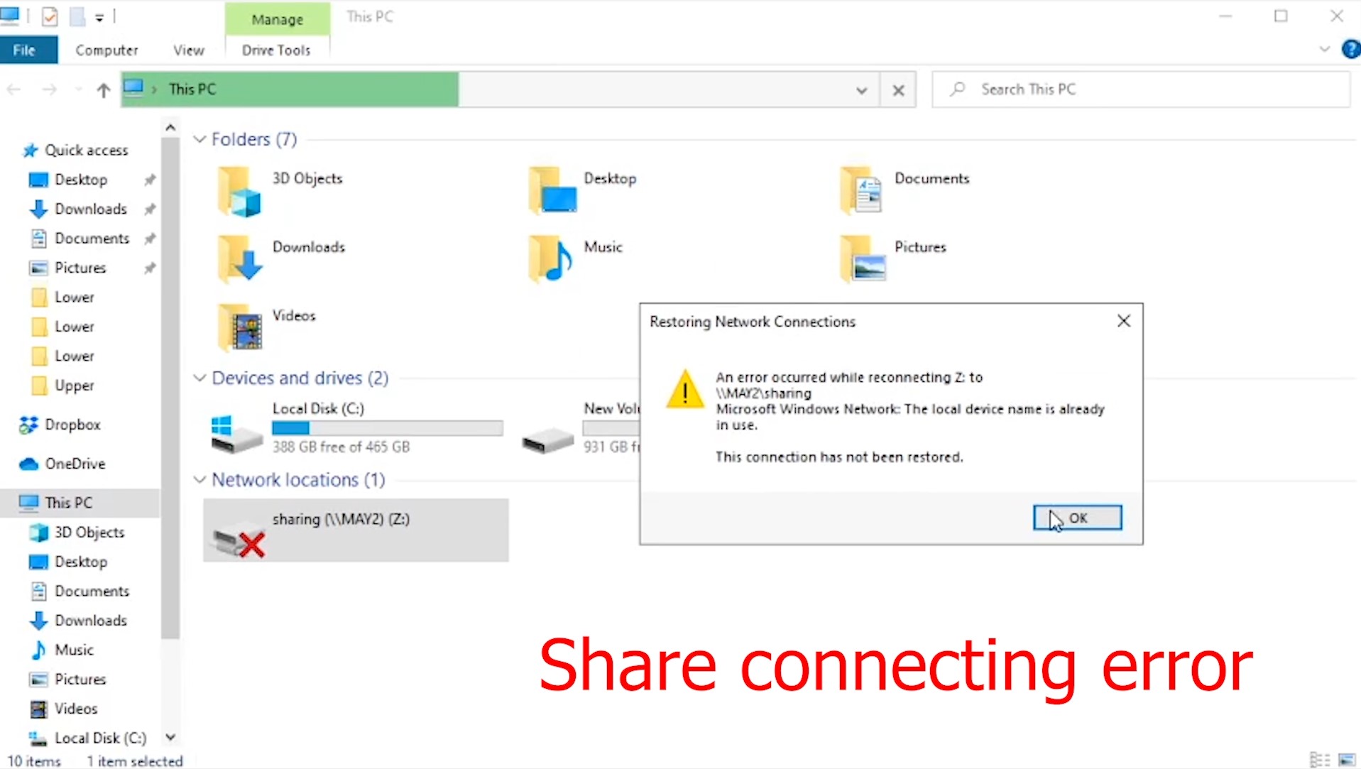 Sửa lỗi không thể truy cập thư mục chia sẽ - Fix error This connection has not been restored
