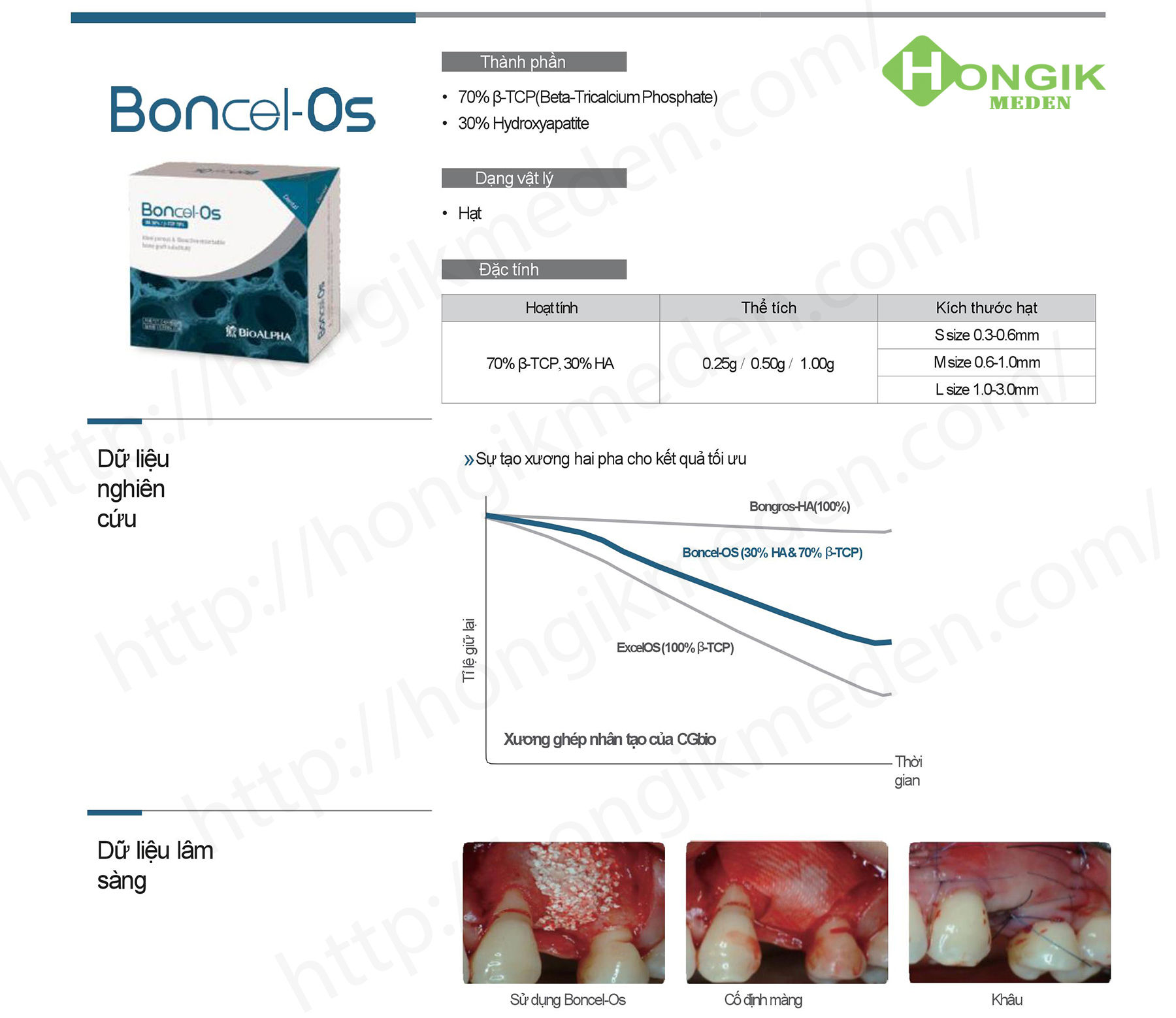 Xương nhân tạo Boncel-Os là hỗn hợp giữa β-TCP(70%) và Hydroxyapatite CAP(30%). Tỉ lệ giữa hai thành phần đã được nghiên cứu để tối ưu sự hình thành xương. Cung cấp sự tái tạo xương 2 pha.